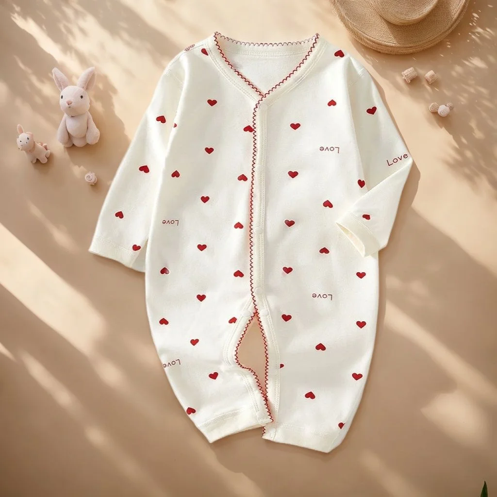 This newborn cotton romper offers soft, breathable comfort for babies aged 0–24 months. Made from 100% cotton, it keeps little ones cozy while remaining gentle on sensitive skin. The solid color design provides a clean, stylish look suitable for any occasion. Long sleeves give added warmth while still keeping the romper lightweight and comfortable. Its thin, flexible fabric allows babies to move freely during play or rest. Snap closures make diaper changes quick and easy for parents. The unisex design works beautifully for both boys and girls. This romper is perfect for lounging at home, sleeping, or casual outings. Durable stitching ensures it holds up through frequent wash and wear. With its cute yet simple style, it’s an essential piece for any baby’s wardrobe.
